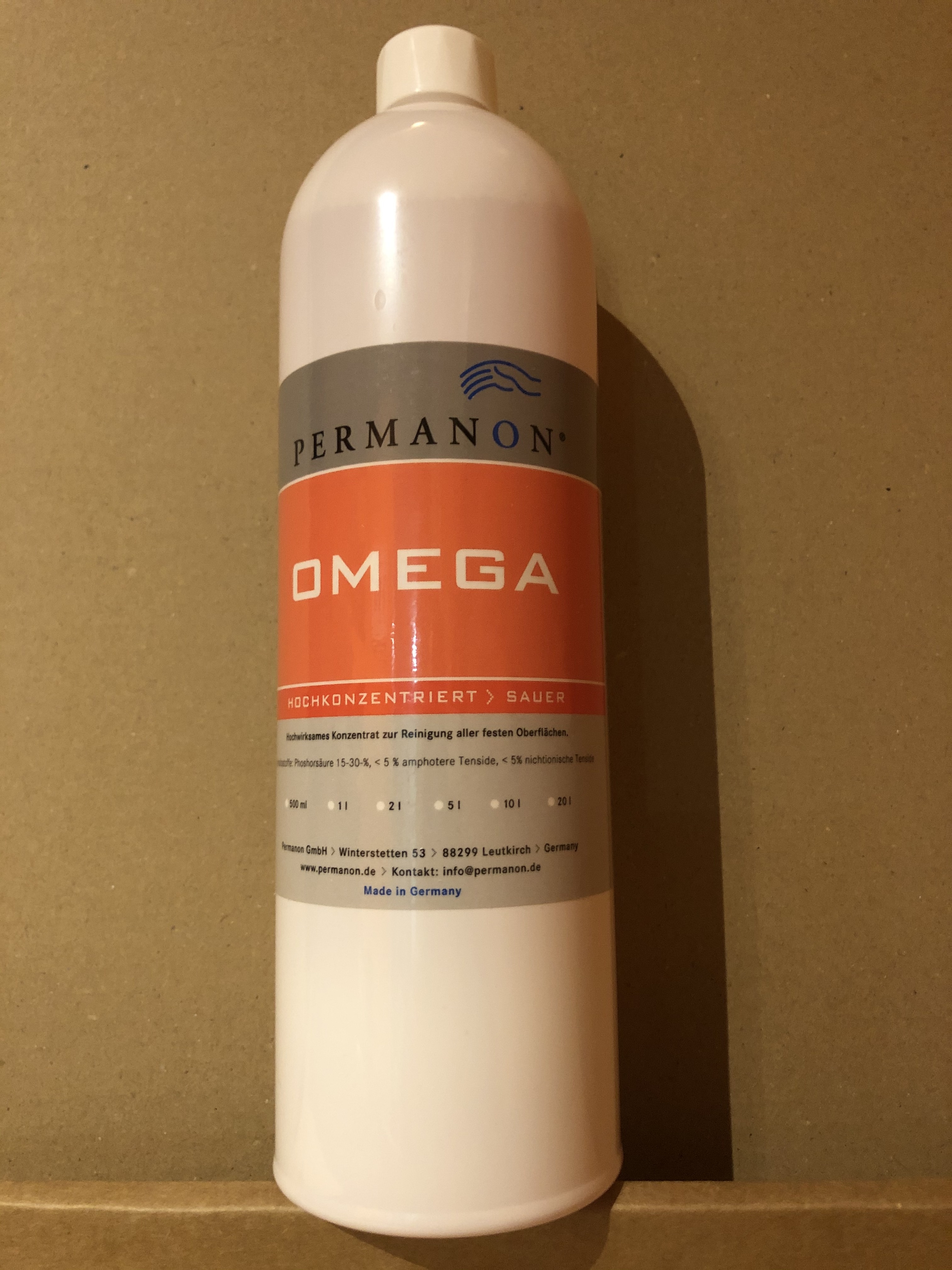 Der Spezialreiniger Omega aus dem Hause Permanon beseitigt mühelos anorgansiche kristalline Verschmutzungen.