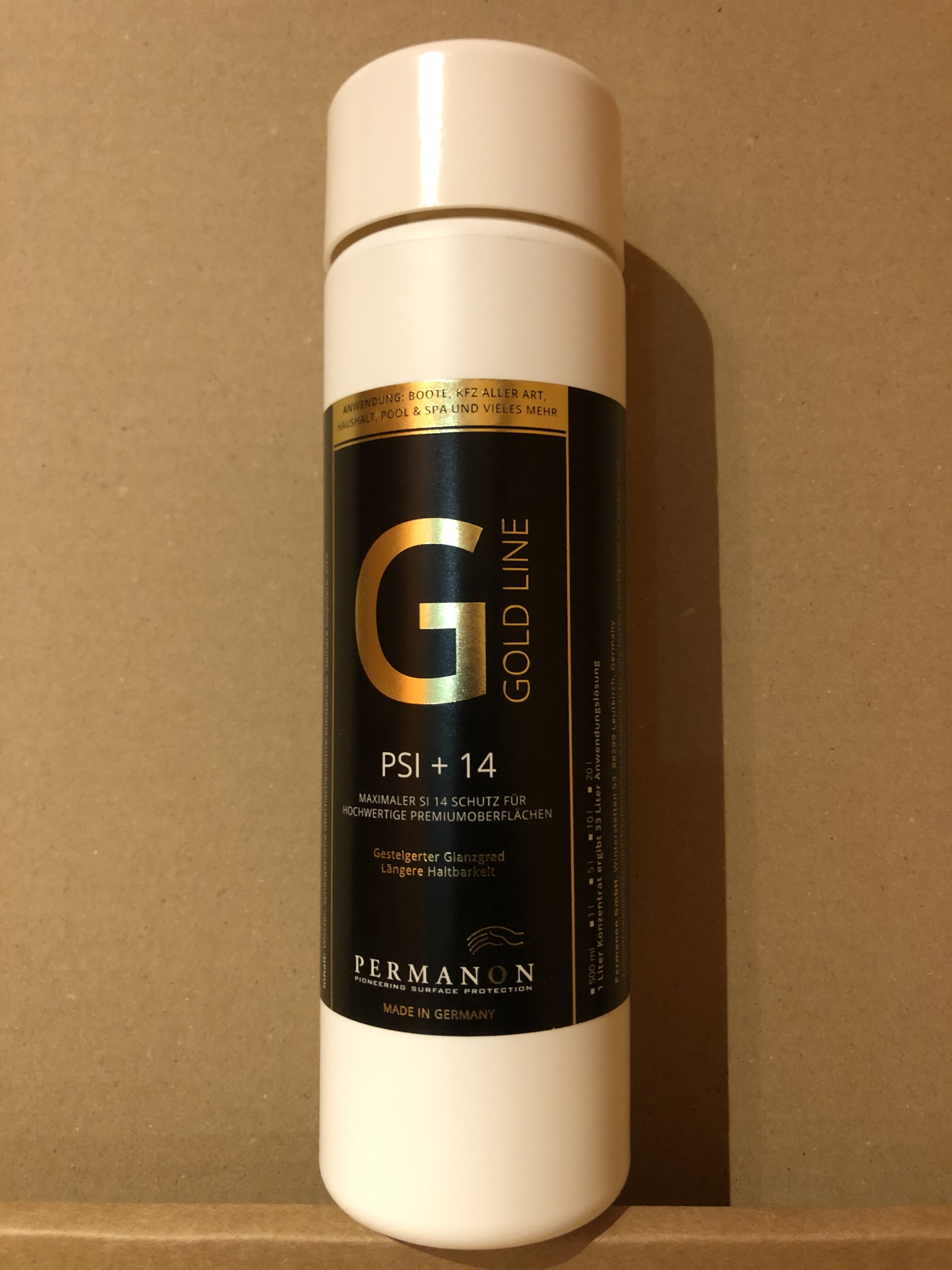 Permanon PSI+14 Goldline Line ist die Versiegelung für alle Oberflächen mit der höchsten Konzentration von 14Si Molekülen und speziellen Polymerverbindungen um einen maximalen Schutz zu gewährleisten.